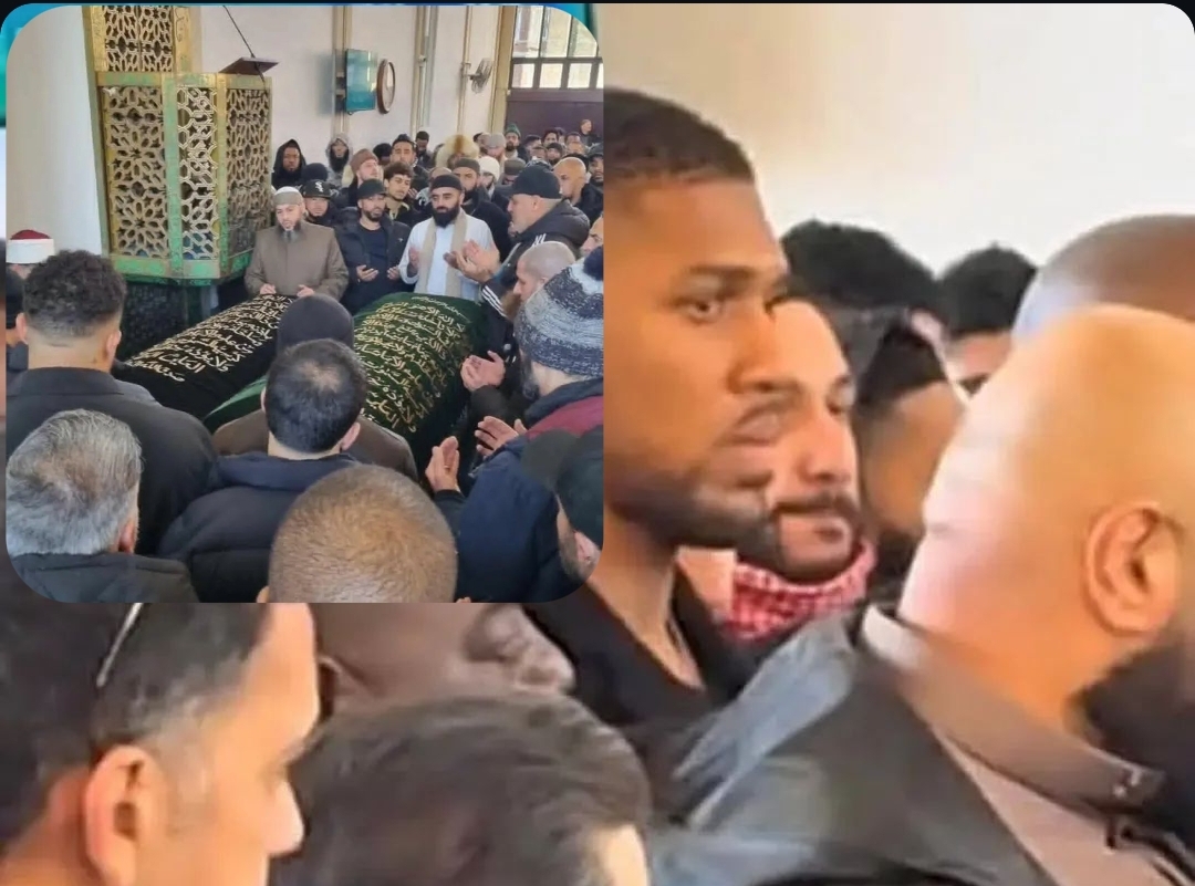 Crowds of sympathisers gathered at a mosque in London, on Sunday as Nigerian-born heavyweight boxing star, Anthony Joshua, attended the funeral of his two close friends who were killed in a car crash along the Lagos-Ibadan Expressway.